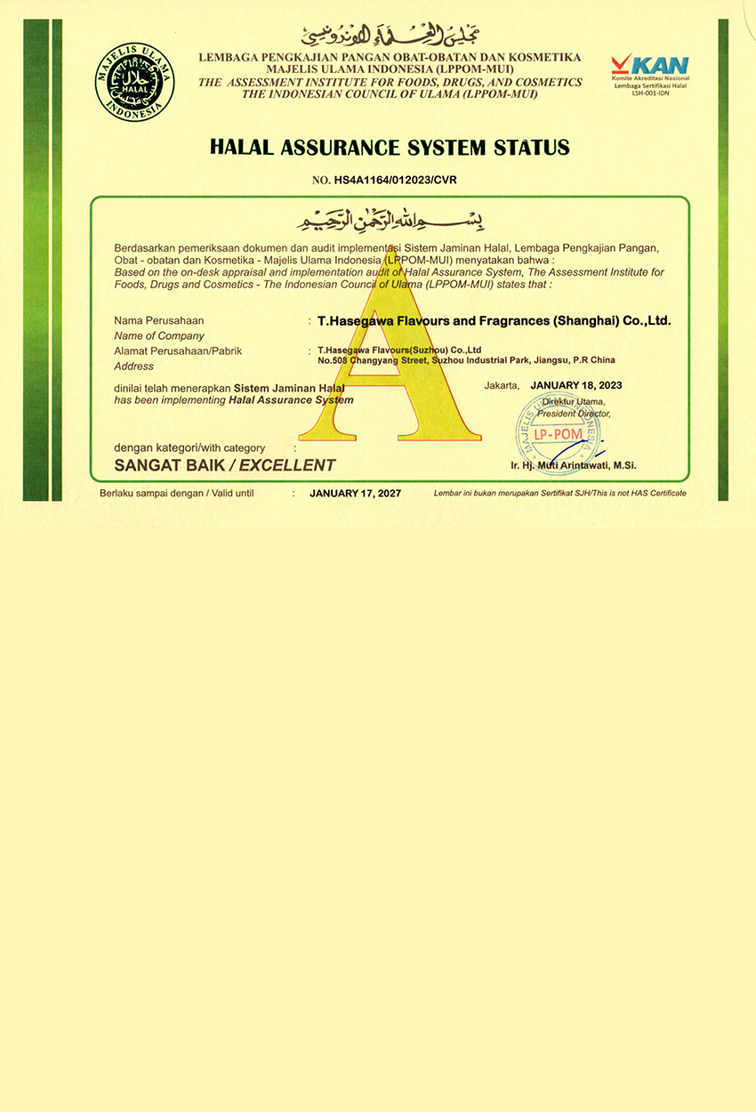 公司引进有百年历史日本总公司的技术及科研成果,在基础研究、理论分析、新产品的开发和运用上不断地取得巨大的成果。快速、准确地为食品、饮料、化妆品、日用品、洗涤用品及烟草等众多的客户提供了大量的物美价廉、优质可信的香精香料产品。